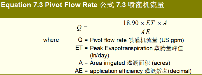 4. 使用公式7.3 确定支轴喷灌机的流量。