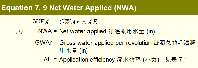 8. 根据公式7.9计算净灌溉水量。